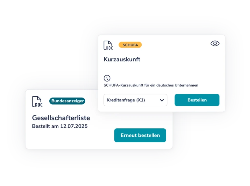 Das Basismodul von KYCnow liefert nationale & internationale Stammdaten, Original-Registerdokumente und B2B-Wirtschaftsauskünfte. Wirtschaftlich Berechtigte (UBOs) werden automatisch ermittelt und Daten aus dem Transparenzregister eingebunden.